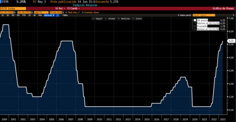 La semana pasada la Reserva Federal elevó el costo del dinero en 25 puntos básicos al rango de 5% y 5,25%, ubicándose por encima de los valores registrados en 2007.
