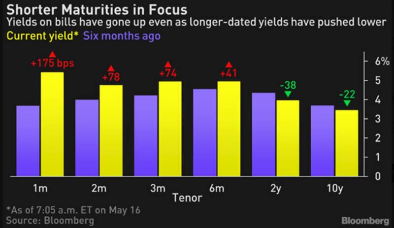 Los rendimientos de los bonos del tesoro americano a un mes subieron 175 puntos básicos, mientras que los bonos de 2 a 6 meses vieron un desplazamiento al alza en las tasas de entre 41 puntos básicos y 78 puntos básicos.