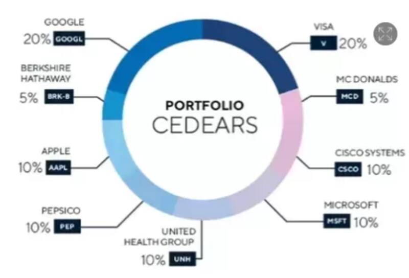 El portafolio recomendado de Criteria se compone de un 20% en Google, 20% en Visa, 5% en Berkshire Hathaway, 5% en McDonalds, 10% en Cisco, 10% en Apple, 10% en Microsoft, 10% en United Health Group y 10% en Pepsi.