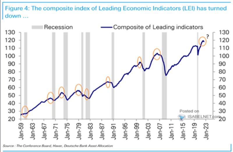 Una de las señales que comienza a preocupar en el mercado es que el índice de indicadores adelantados de la economía comienza a mostrar señales de reversión.