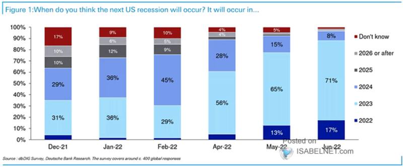 Según la última encuesta de mercado realizada por Deutsche Bank, el 17% de los encuestados espera que la recesión ocurra este año, saltando al 71% de cara a 2023.