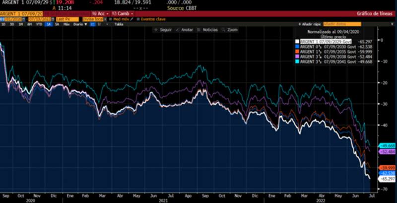 Desde que salieron a cotizar los bonos muestran pérdidas de entre 50% y 65% a la vez que los rendimientos de la deuda argentina superan las tasas de los bonos de países en guerra como ucrania, o de Sri Lanka, sumergido en una grave crisis política, económica, social e institucional.