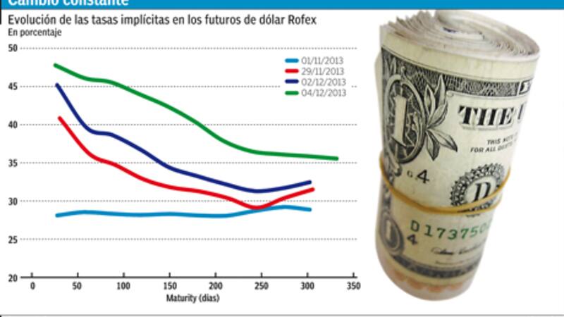 Hoy en día, la curva de futuros refleja las expectativas de depreciación. No hay arbitraje de tasas en pesos y dólares por el cepo cambiario, dijo Marcelo Comisso, del área de Research de Rofex. Refleja la aceleración del ritmo de devaluación del spot. Se está descontando que en las posiciones más cortas se va a acelerar el ritmo de devaluación, agregó.