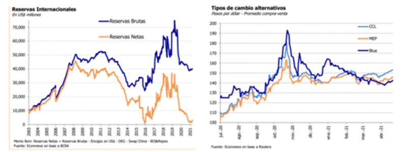 Actualmente las reservas brutas se ubican en niveles de u$s 40.000 millones, prácticamente en los mismos niveles que comenzó el año. Por su parte, las reservas netas se estabilizaron pero no mejoraron. Las mismas se ubican en torno a los u$s 2815 millones y se encuentran en valores cercanos al 2016.