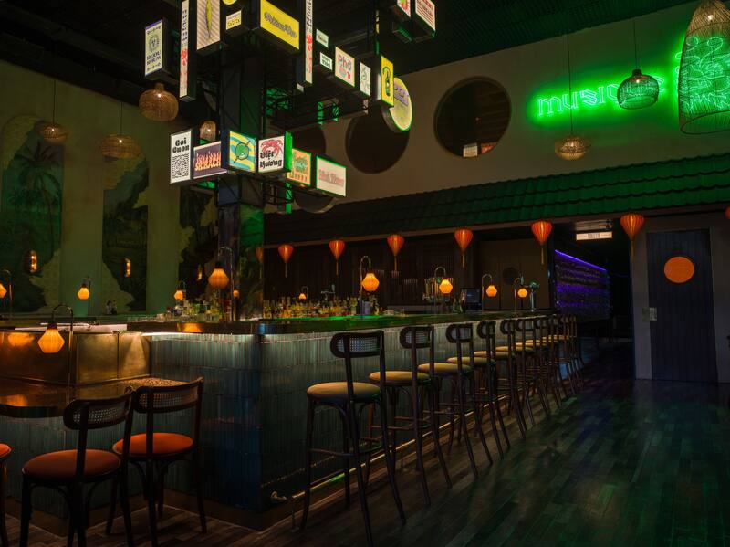 Su idea, en principio, era abrir un bar muy íntimo en un primer piso. Pero con el comienzo de la pandemia en 2020 los planes cambiaron. Fue ahí cuando apareció el enorme local de Armenia 1540 en Palermo. Su destino fue Cochinchina: un bar escenográfico de dos pisoscon unauna barra protagónica en el centro y una carta inspirada en la cultura franco-vietnamita.