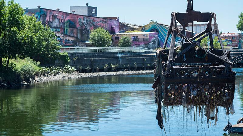 Las máquinas que trabajan por limpiarlo no pasan desapercibidas. Sacan de su cauce neumáticos, botellas, sillones. Otros días, pueden incluso avistarse, entre las garras que extraen aquello que le es ajeno, electrodomésticos (grandes y pequeños) e incluso autos.