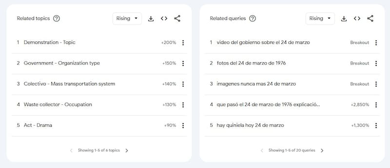 Según el análisis de las tendencias de Google, las consultas se dividieron entre la búsqueda de material audiovisual reciente del Gobierno y la necesidad de información clara sobre los sucesos de 1976.