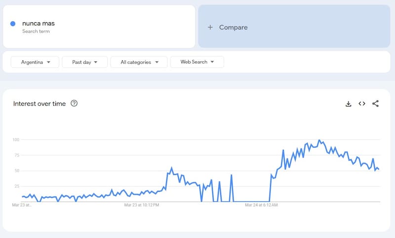 Consultas asociadas como “ni olvido ni perdon nunca mas” también entraron en categoría Breakout, reflejando cómo la sociedad utilizó el buscador para conectar con la simbología de la fecha.