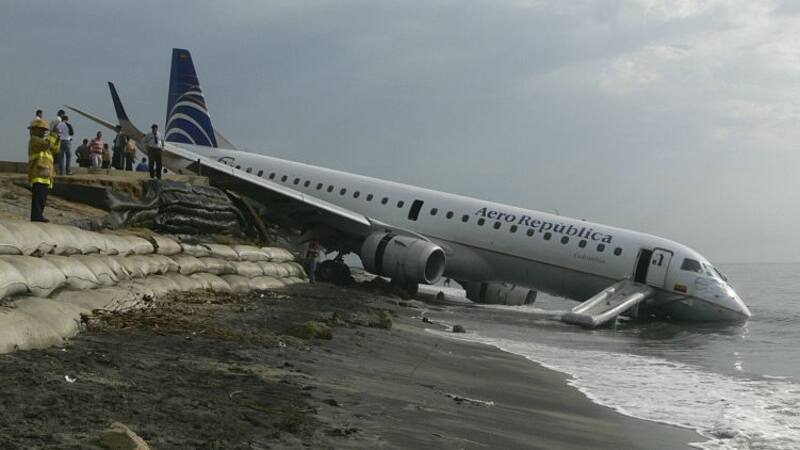 Según precisó la Aeronáutica Civil colombiana, la aeronave era un Embraer 190, de la aerolínea Aerorepública y viajaba desde Cali a Santa Marta. Por circunstancias que aún se desconocen, el avión despistó y se incrustó parcialmente entre la arena y el mar.
