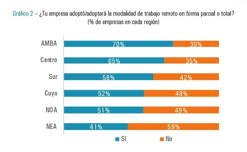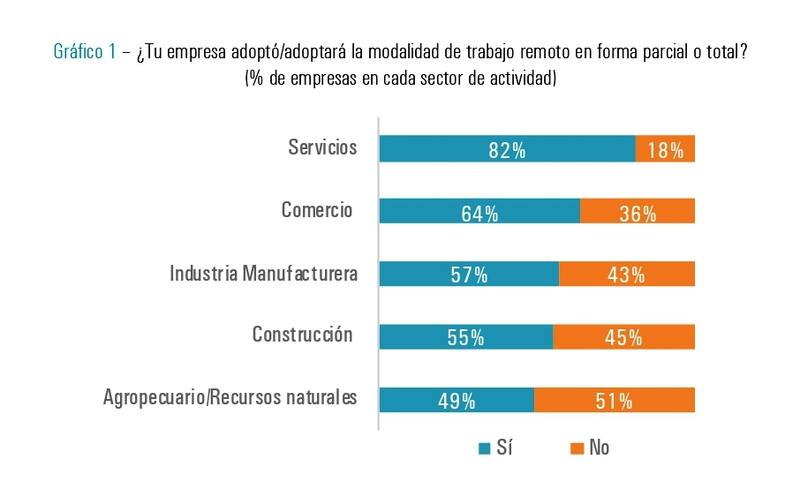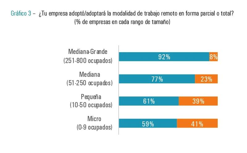 "El 49% de las empresas que adoptaron trabajo remoto durante la pandemia o adoptarán en 2021 no tenían personal desempeñándose bajo esta modalidad antes de la crisis del Covid-19", precisó.