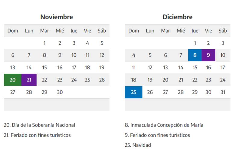 La jornada se mostrará como anticipo al fin de semana largo del lunes 21 de noviembre, en carácter "puente turístico" anexado al domingo 20, según el calendario de feriados establecido por el Ministerio del Interior.