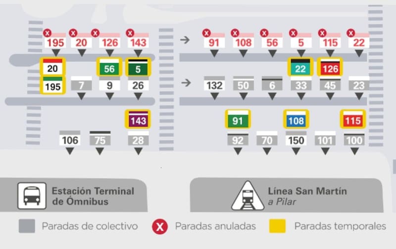 Las líneas de colectivo afectadas por estas remodelaciones son 5, 20, 22, 56, 91, 108, 115, 126, 143 y 195. La duración de esta obra y reubicación durará solo dos semanas. Aunque, desde marzo se producirán cambios para mejorar la zona.