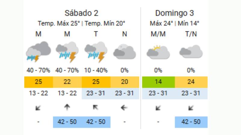 El sábado 2 de noviembre traerá un alivio del calor, con la llegada de aire frío que podría generar algunastormentas aisladas por la mañana. Las temperaturas comenzarán en 22ºC y se mantendrán estables durante la primera parte del día.