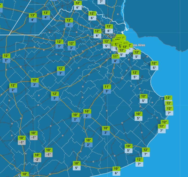 Por su parte, las ciudades más alejadas como los alrededores de Tandil experimentarán una mínima de 3°.