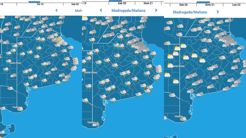 Es así que el viernes 19, sábado 20 y domingo 21 de septiembre, toda la provincia estará afectada por las precipitaciones. También se incluye al Área Metropolitana de Buenos Aires (AMBA).