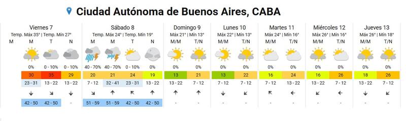 Luego de las tormentasdel viernes, el Área Metropolitana de Buenos Aires (AMBA) registra este sábado un notable descenso de temperatura. El termómetro en la zona oscilará entre los 19 y 24 grados.