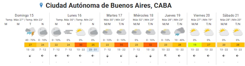 El organismo publicó el pronóstico del tiempo para la Ciudad Autónoma de Buenos Aires:
