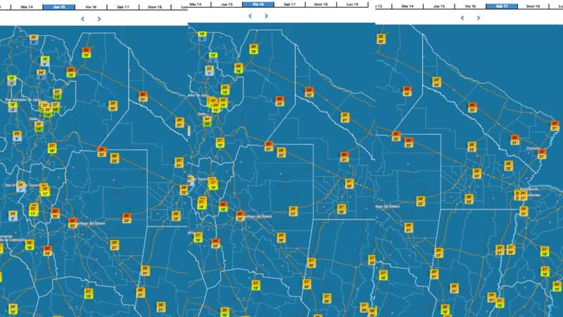 - Jueves: máximas de 30°C, mínimas de 23°C, vientos