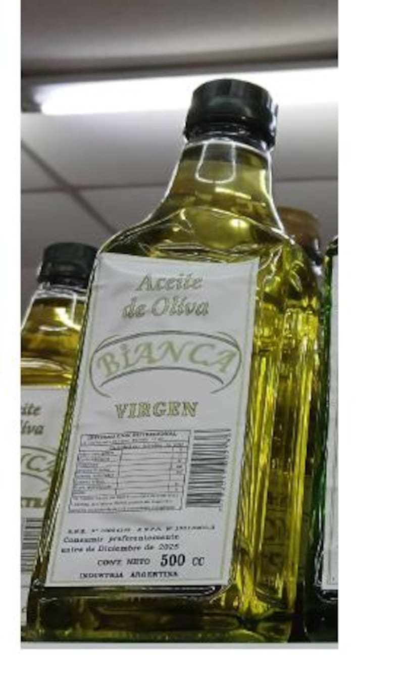 | Aceite de oliva virgen | Bianca | 500 cc. | Diciembre de 2025 | RNE N° 13006315 / RNPA N° 13014203-3 |