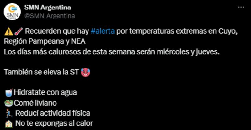 El Servicio Meteorológico Nacional señala que "una ola de calor es un período excesivamente cálido en el cual las temperaturas máximas y mínimas superan, por lo menos durante 3 días consecutivos y de forma simultánea, ciertos valores que dependen de cada localidad".