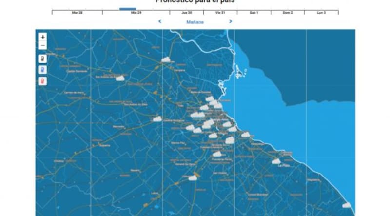 - Jueves 30: máximas de 19° C y mínimas de 10° con un día mayormente nublado y sin precipitaciones.