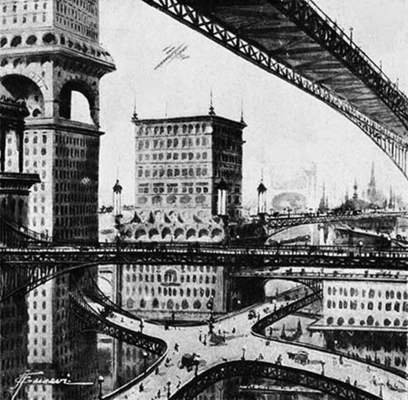 Sin embargo, El Hogar no fue la primera -ni la última- publicación en imaginar una ciudad del futuro similar a la Nueva York de los primeros años del siglo pasado. Edificios art déco, gigantescas estructuras de hierro para el uso de autos, trenes y monorrieles, estaciones para amarrar dirigibles y hasta personas con dispositivos que les permitieran volar eran parte del imaginario tecnológico de la época.