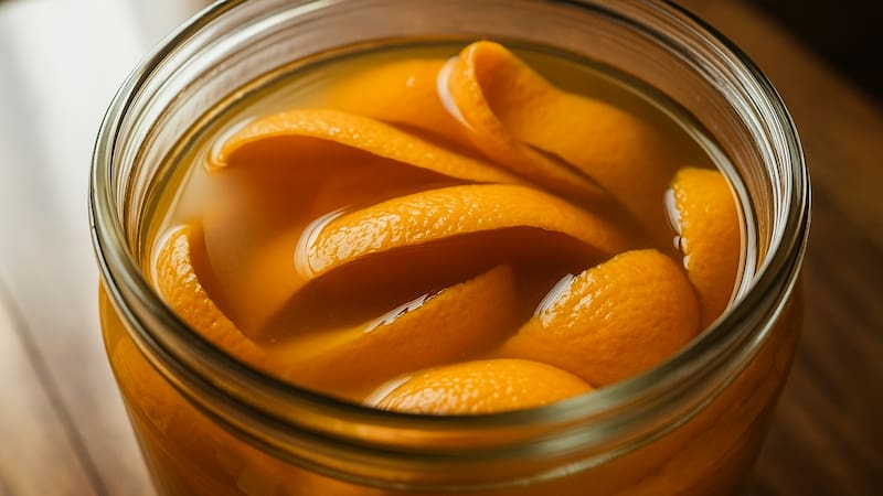 ¿Cómo se prepara la mezcla de cáscaras de naranja y bicarbonato?