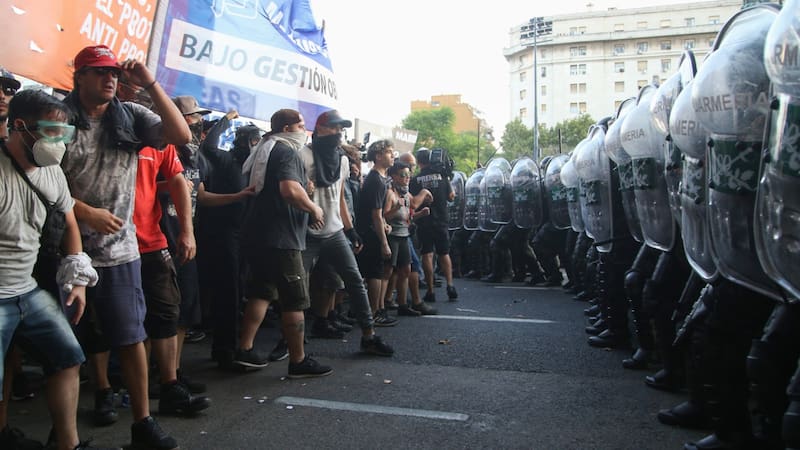 En el marco de los incidentes los bomberos apagaron neumáticos incendiados y desplegaron un cordón de la Policía Federal. También acudieron efectivos de Infantería y de la Prefectura Naval Argentina. Se registraron diversos incidentes como corridas y empujones. La policía utilizó gas pimienta y un camión hidrante para impedir el bloqueo.