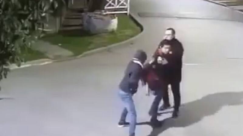 Luego de que los implicados se dieran a la fuga, la cámara de seguridad registró el susto que sufrieron el padre y el adolescente, quienes se abrazaron y dieron la vuelta hacia su domicilio.