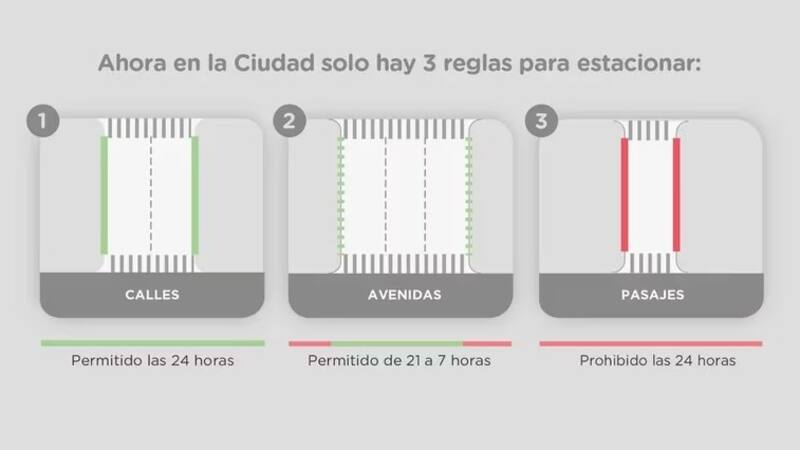 "Hasta ahora uno veía por la ciudad un montón de carteles celestes de permitido estacionar, sobre todo en la mano izquierda que antes estaba prohibido por la norma anterior. Ahora siempre va a estar permitido, a no ser que haya un cartel que indique lo contrario porque, por supuesto, en algunas calles todavía va a seguir habiendo prohibiciones de estacionamiento por cuestiones de tránsito", dijo.