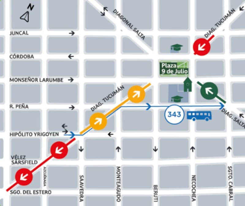 Además, los cambios impactan en el recorrido de la línea 343 en sentido hacia Martínez, específicamente en el tramo entre Monteagudo y Sargento Cabral. A partir de ahora, el colectivo circulará por Diagonal Tucumán, Rodríguez Pela y San Lorenzo, para luego continuar con su recorrido habitual.