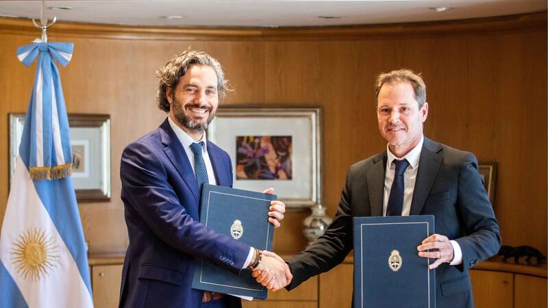 El canciller Santiago Cafiero suscribió hoy un Convenio Marco de Cooperación con el Club Atlético River Plate, junto a su presidente, Jorge Brito, como parte de las acciones que el ministerio a su cargo desarrolla con los diferentes clubes, asociaciones y federaciones deportivas del país.