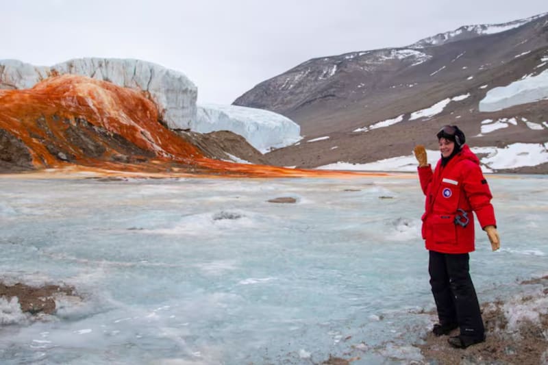 La llamada “cascada de sangre” surge desde el interior del glaciar Taylor, ubicado en los Valles Secos de McMurdo, uno de los lugares más áridos de la Tierra. La escena parece sacada de una película: un chorro de agua roja que fluye desde el hielo milenario, creando un contraste visual único.