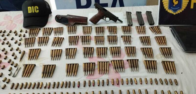 En el primero que alquilaba la pareja, sobre la calle Necochea al 915, secuestraron un arma de fuego calibre 9mm, tres cargadores; 65 cartuchos calibre 9mm; 72 vainas servidas calibre 9mm y 190 cartuchos calibre 7,65 con sus respectivos peines cargadores; un DVR con las cámaras de seguridad y una notebook.