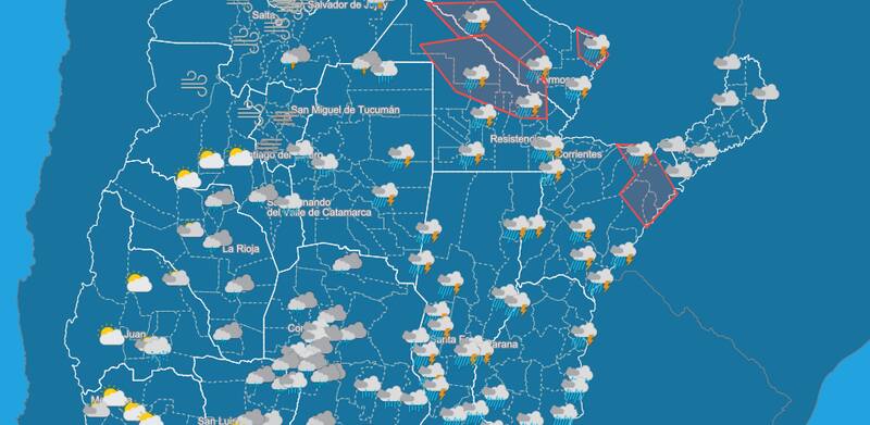 - Chaco: las lluvias persistirán durante todo el martes, con una máxima de 22°. Al igual que en Corrientes, el viernes se esperan nuevas tormentas por la tarde.