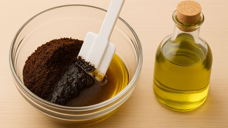 Mezclar café con aceite de oliva, una solución hecha con residuos