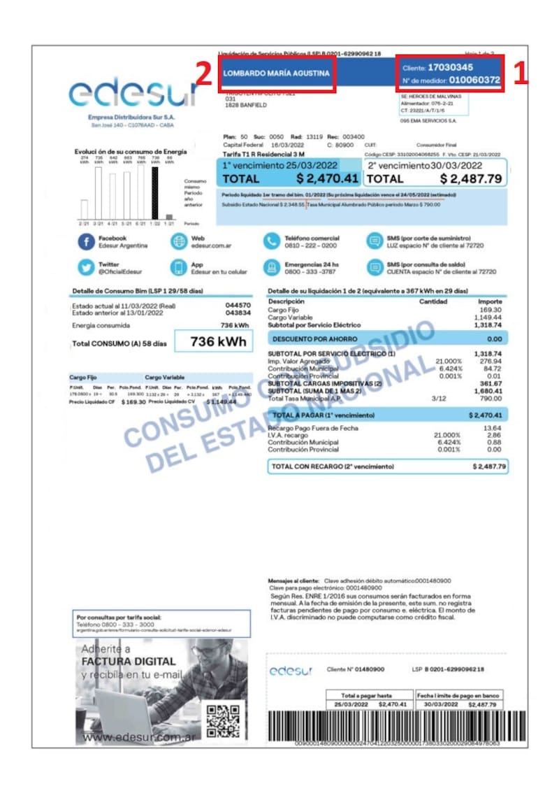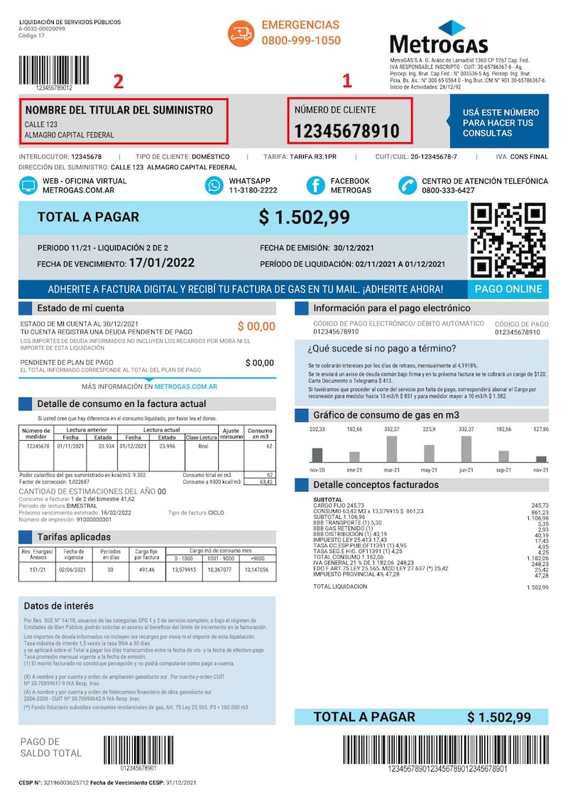 Cómo saber cuál es el número de cliente y de medidor en los recibos de luz y gas