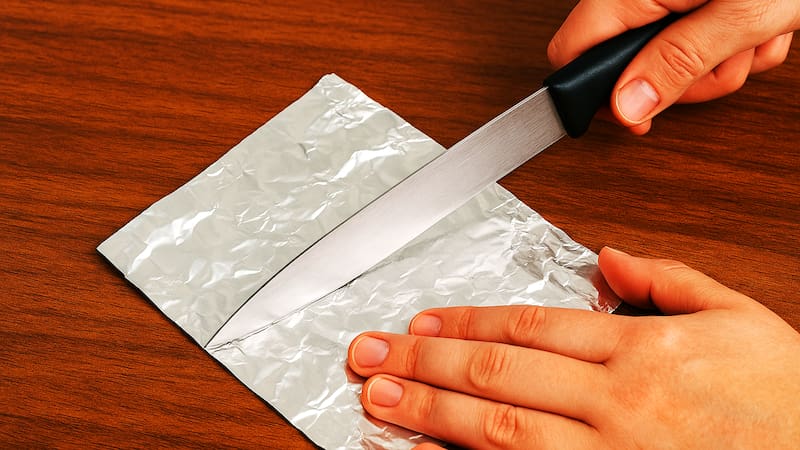 Otro uso práctico consiste en afilar tijeras o cuchillos. Cortar varias capas de papel aluminio mejora temporalmente el filo, extendiendo su vida útil sin necesidad de herramientas especiales.