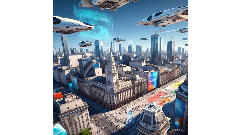 En el caso de la inteligencia artificial de Meta, creó algunas imágenes de cómo sería la Ciudad de Buenos Aires en 100 años. Por ejemplo, el Obelisco seguiría como centro de la Avenida 9 de Julio, aunque con un diseño diferente en la rotonda que lo rodea.