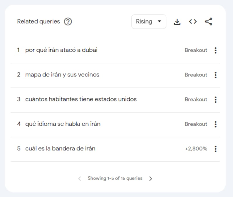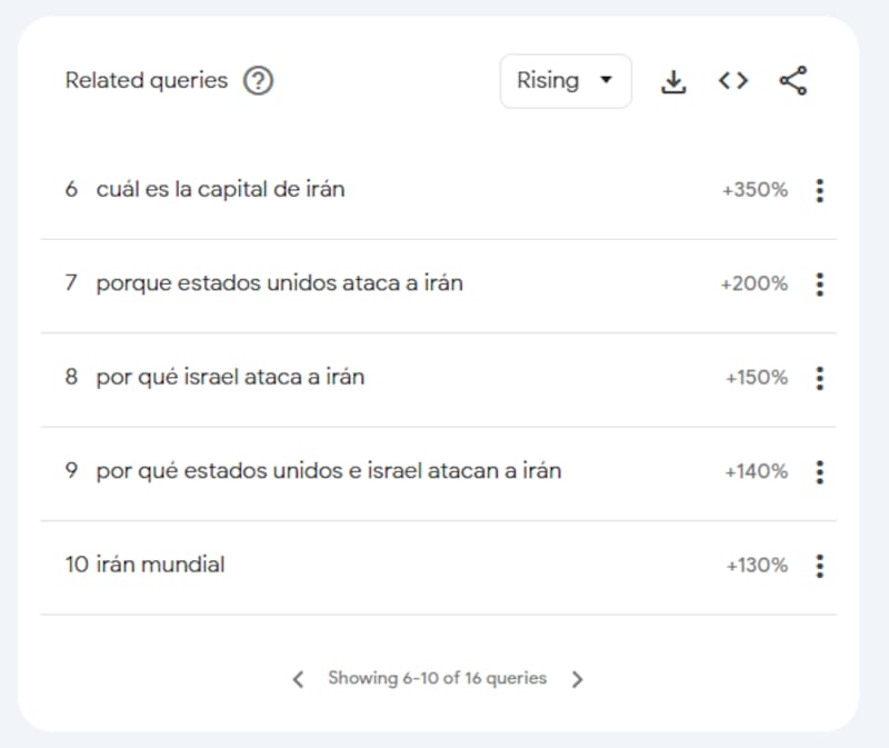 - “mapa de irán y sus vecinos”: La gente buscó ubicar el conflicto geográficamente.