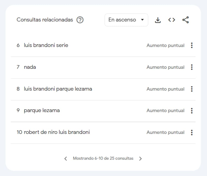 Es decir, son palabras o frases que pocos buscaban el día anterior y que, de repente, se volvieron masivas. Es el indicador más claro de una noticia de último momento que “rompe” las estadísticas habituales.