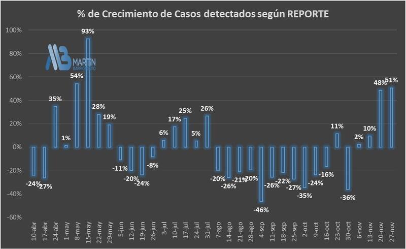 Al ahondar en los números difundidos por la cartera nacional, 475 fueron los positivos diarios promedio de la última semana. Sin embargo, y a diferencia de los que ocurrió meses atrás, los fallecidos y pacientes en terapia aún permanecen estables, con un "muy leve crecimiento", de acuerdo al análisis de evolución que realiza el senador por Corrientes Martín Barrionuevo.