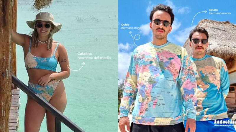 Guido, el mayor, es economista (UBA) y se encarga de toda la parte contable y económica de la marca; Cata, la del medio, es politóloga (UBA), pero sobre todo es la viajera y cabeza creativa de la marca, quien se encarga del diseño y marketing de Indochina. Por su parte, Bruno, el más pequeño, estudia abogacía (UBA) y se encarga de todos los aspectos de la producción y manejo de los proveedores.