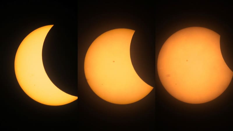 - Eclipse solar parcial: la Luna únicamente cubre una parte del Sol, logrando que esta estrella aparezca con un "mordisco".