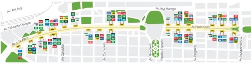 Se trata de 30 líneas de colectivos que circulan desde av. Leandro N. Alem y San Martín hasta av. Paseo Colón y av. Independencia. La reorganización de las paradas fue determinada en base a las necesidades de los ascensos y descensos de pasajeros y a la simultaneidad de llegada de los servicios de transporte público de pasajeros.