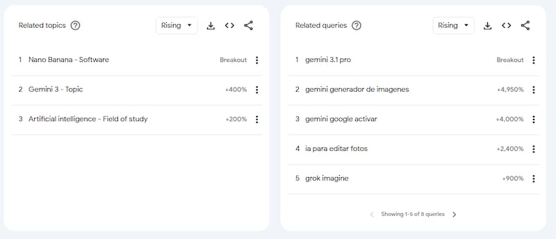 Las búsquedas de “gemini generador de imagenes” crecieron un 4.950%, seguidas por la necesidad técnica de saber “gemini google activar” (+4.000%).