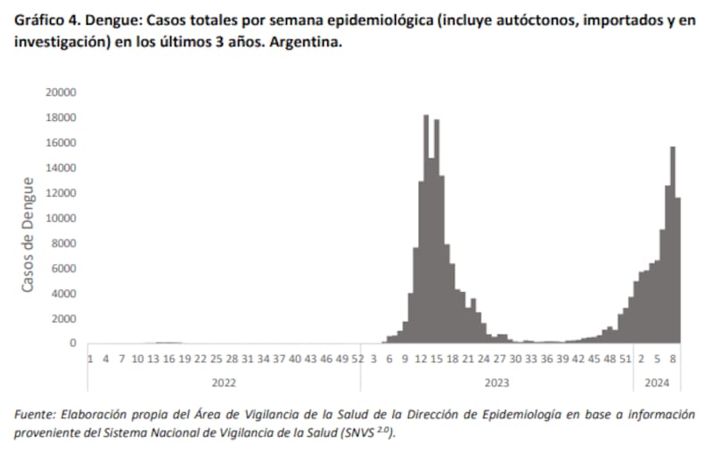 Hasta el momento, se notificaron 78.606 casos de dengue,lo que represente un aumento de 17,2 veces en comparación al mismo período de 2023 que registró 4317.