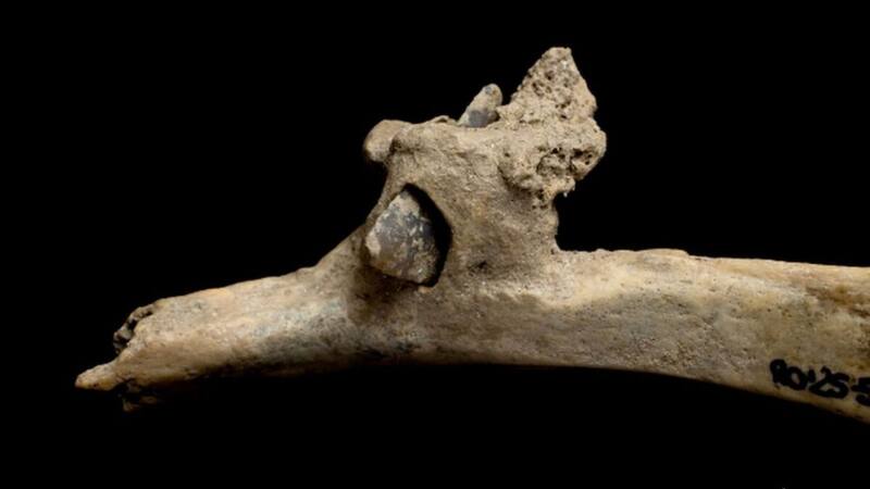 Uno de ellos presentaba una fractura en la costilla derecha con una punta de flecha que aún se conservaba dentro del hueso.