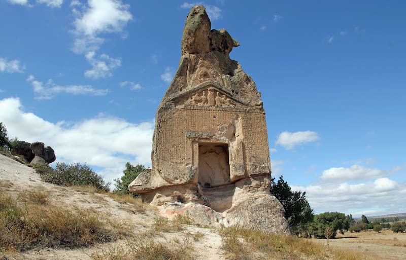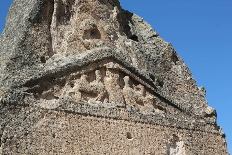 Se trata de una inscripción que se ubica en la fachada del monumento de 15 metros de altura, tallado en piedra volcánica. La investigación liderada por el profesor Mark Munn logró identificar la palabra "Materan". Se cree que esta hace referencia a la diosa madre de los frigios, el pueblo que habitó la región entre los siglos VIII y VII a.C.