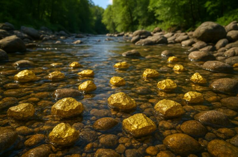 Las rocas en el subsuelo de esta área contienen pequeñas cantidades de este metal valioso y, debido a procesos geológicos, como erosión, agua y desgaste natural, fueron arrastradas por el cauce del río.